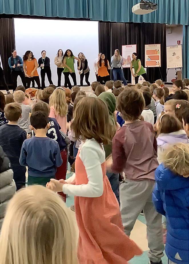 Hands-On Workshops — Students engage directly with dance, music, and performance, learning Bollywood moves, rhythmic patterns, or classical techniques in a participatory setting.